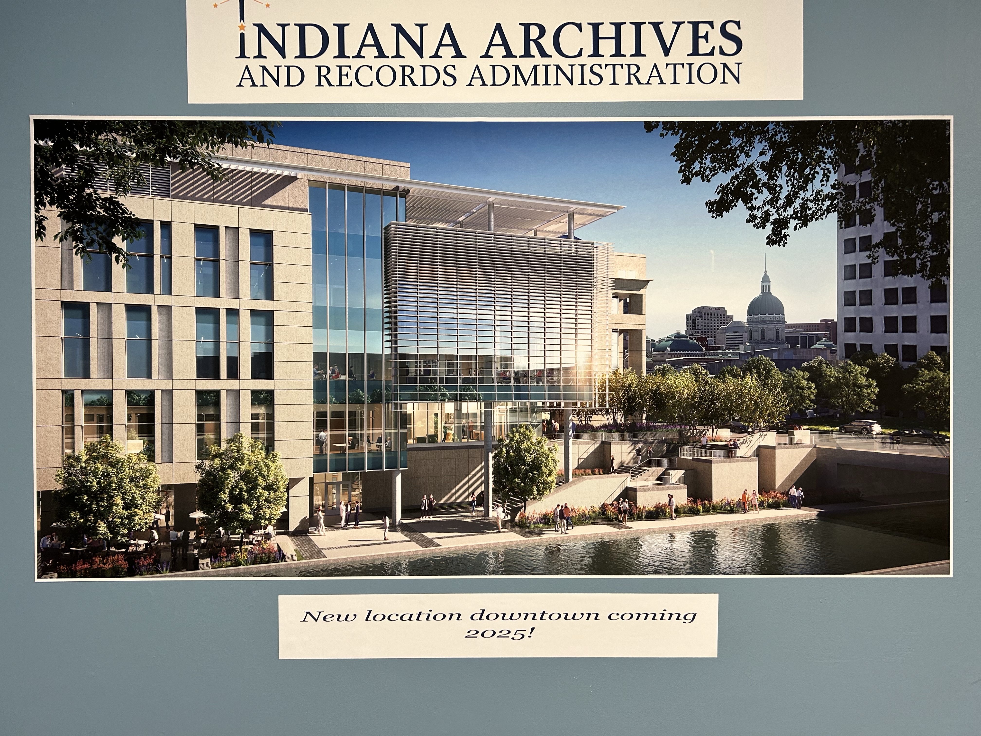 much needed new facility for the Indiana State Archives. It will be located in Indianapolis across the canal from the Indiana Historical Society on East Ohio Street, and will extend north to East New York Street.