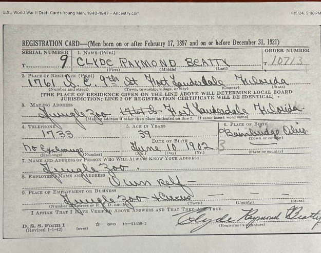 Instead of staying in Rochester Clyde and Harriett moved to Ft. Lauderdale with their wild animal show. He continued his popular act around the country and in the movies; he wrote a few books about his life, and there was even a radio show based on his life from 1950 to 1952. In1945 he bought the Wallace Bros. Circus and renamed it the Clyde Beatty Circus, and in 1957 the Clyde Beatty Cole Bros. Circus was formed.