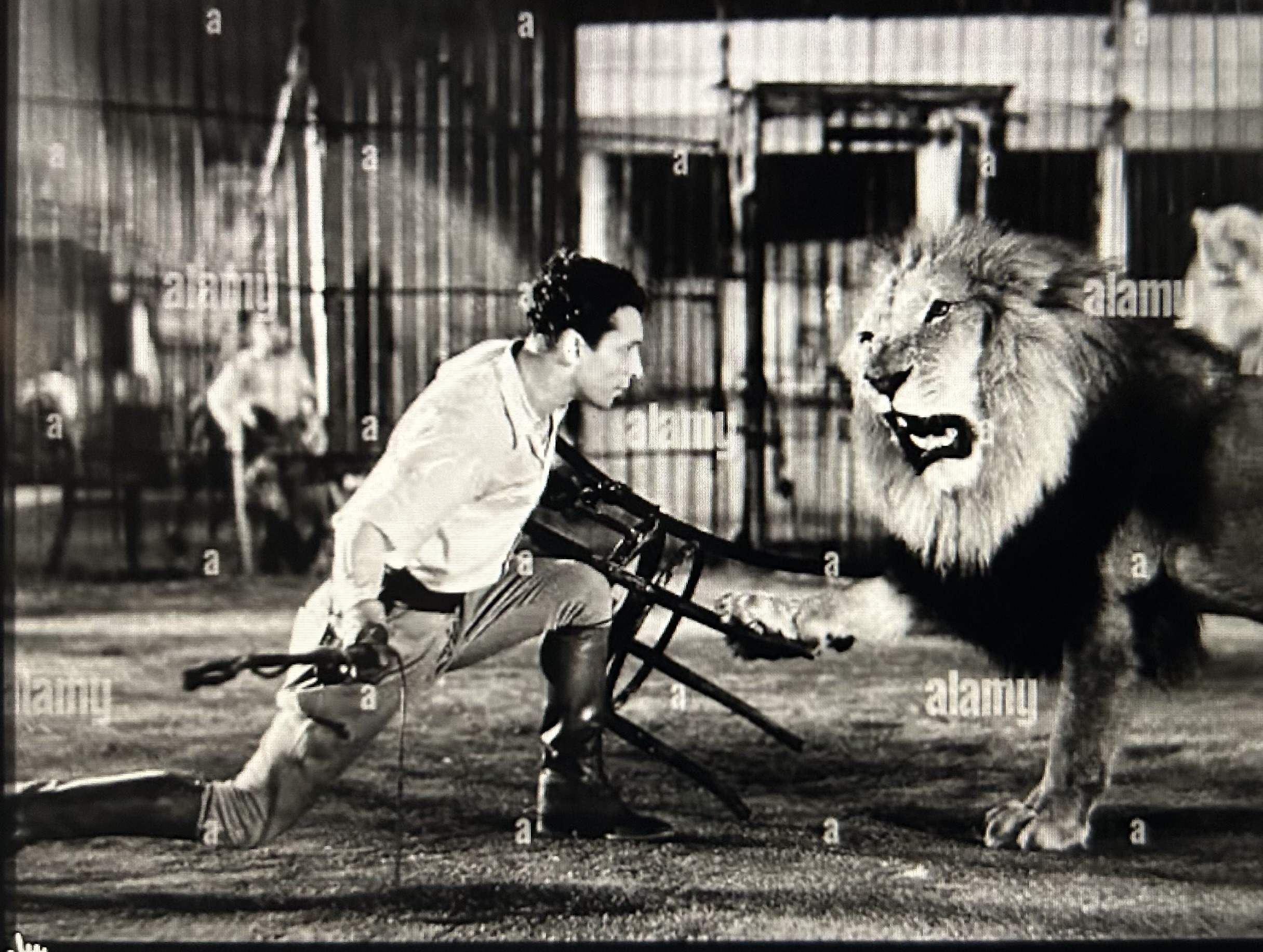 Clyde Beatty was born on June 10, 1903, in Bainbridge, Ohio and joined the Howes Great London and Van Amburgh’s Wild Animal Circus after he graduated from High school in 1921.Then he worked for the Gollmar Bros. and Wild Animal Act from 1922 to 1924. There he developed a lion and tiger act of 25 animals while under the tutelage of trainers Louis Roth and John “Chubby” Guilfoyle. In 1925 Beatty went to work for the Hagenbeck-Wallace Circus which wintered in Peru, Indiana. He married aerialist Harriett Evans in 1933.